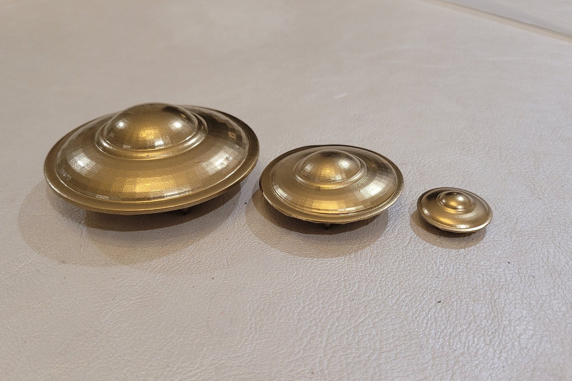 This listing is for one 3D Printed UFO/UAP figurine painted in metallic gold paint.